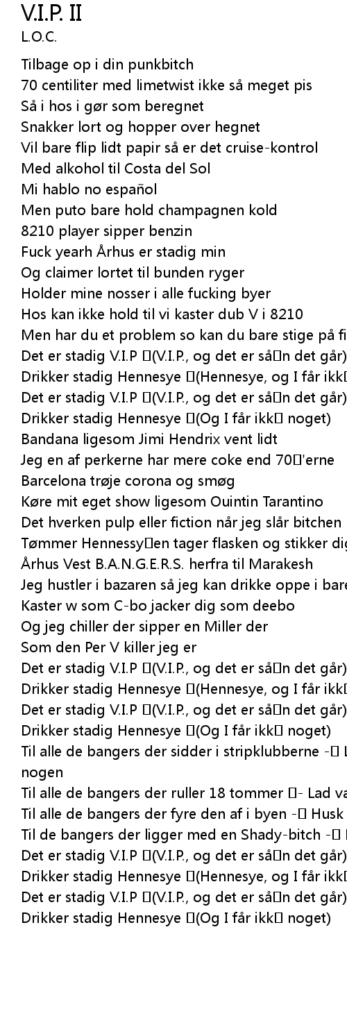 | Det er stadig V.I.P (V.I.P., og det er sån det går) | |