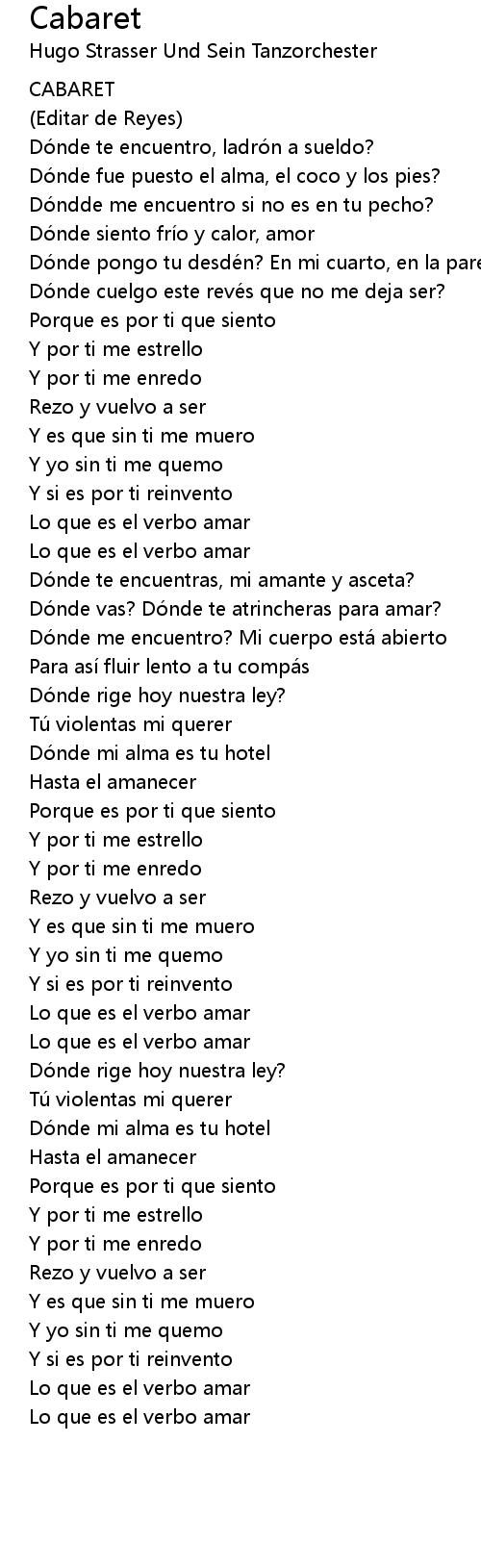 | [00:34.55] | Dónde pongo tu desdén? En mi cuarto, en la pared? |
