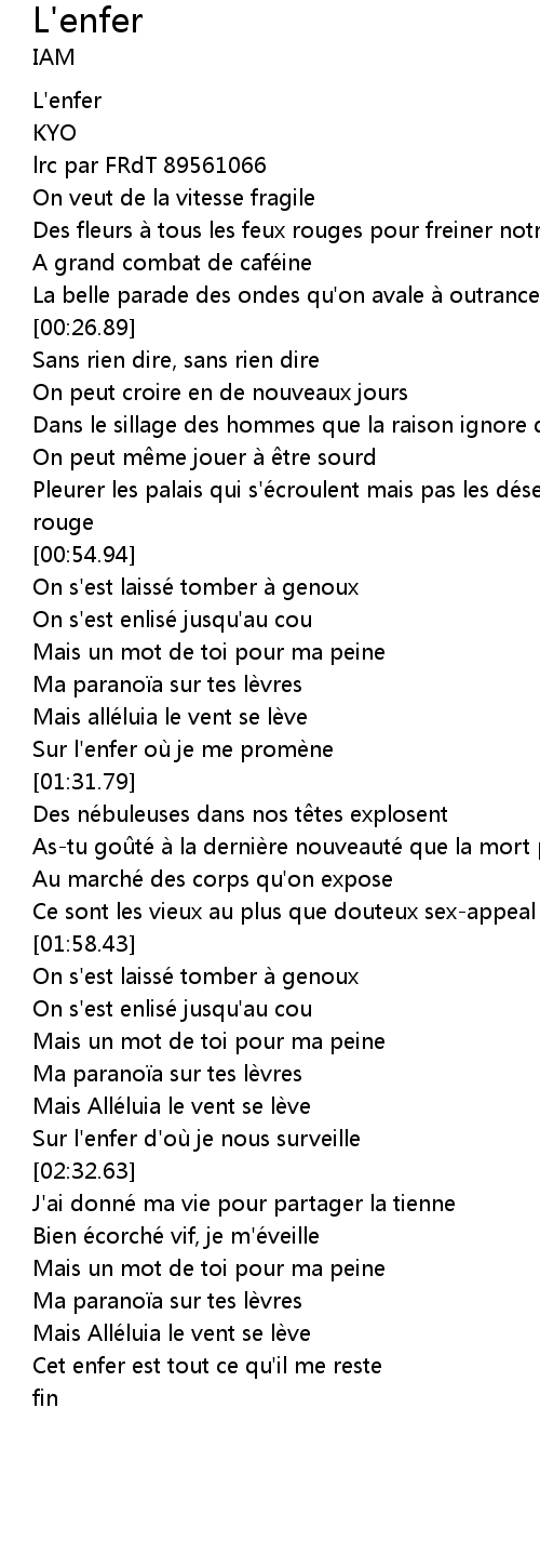 | [00:01.65] | L'enfer |