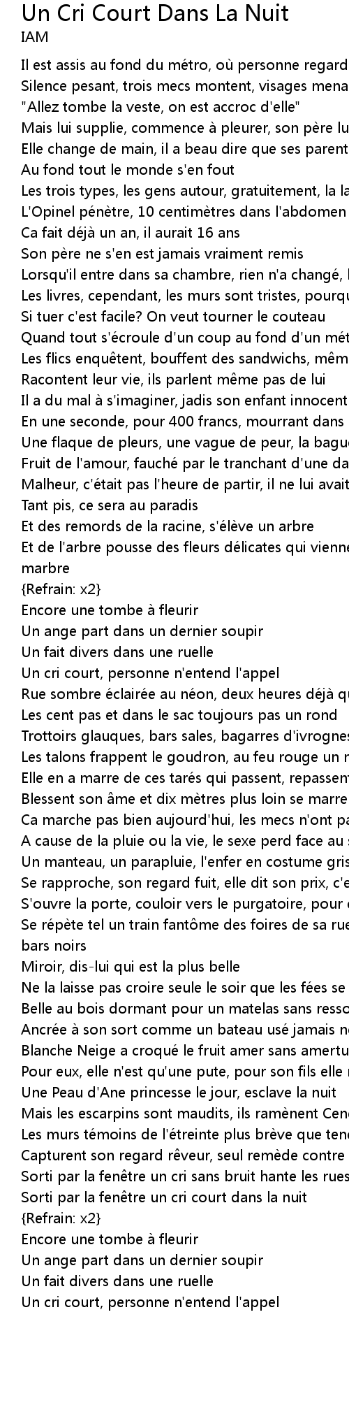 | Sorti par la fenêtre un cri court dans la nuit | |