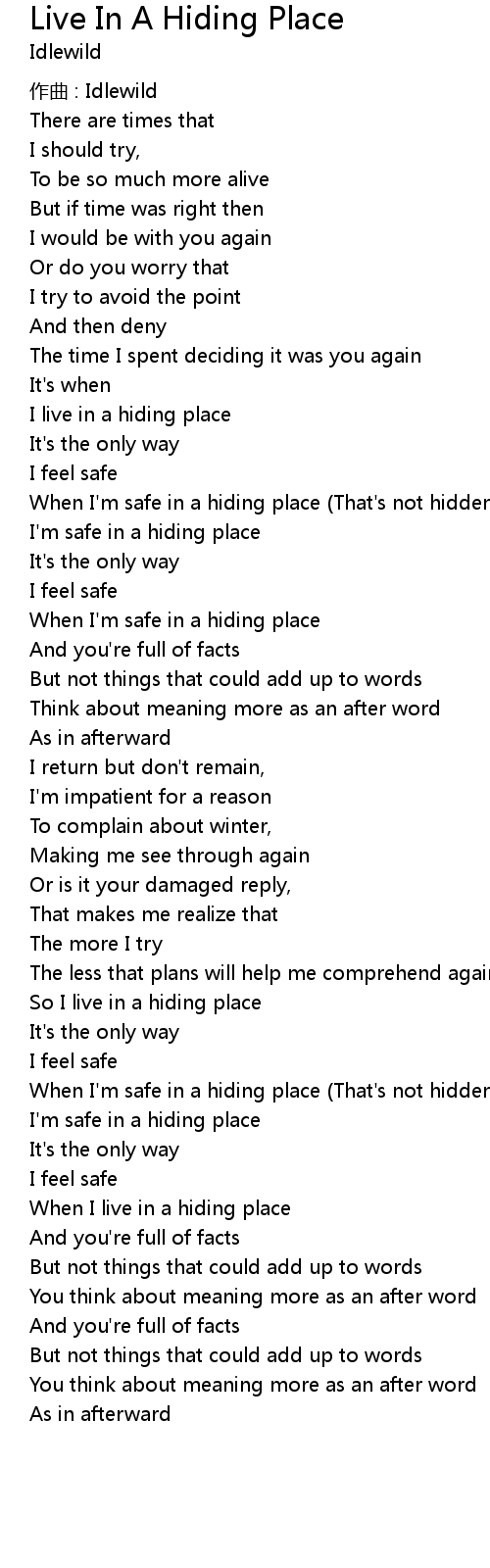 | When I'm safe in a hiding place (That's not hidden now) | |