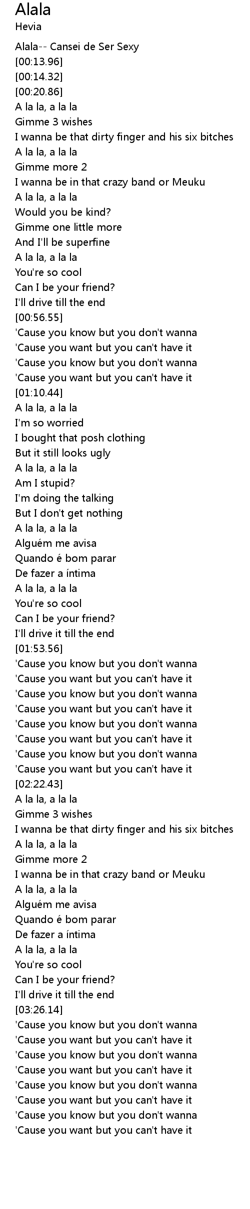 | [00:00.77] | Alala Cansei de Ser Sexy |