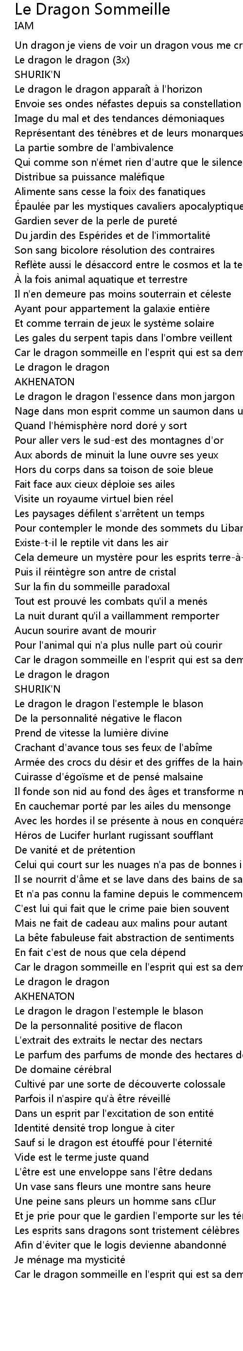 | Song | Le Dragon Sommeille |