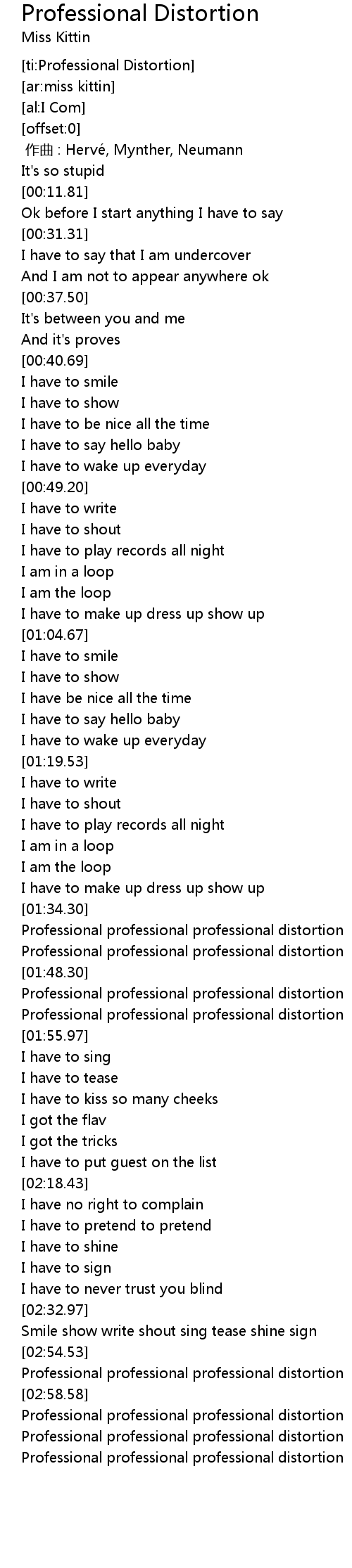 | [03:02.78] | Professional professional professional distortion |