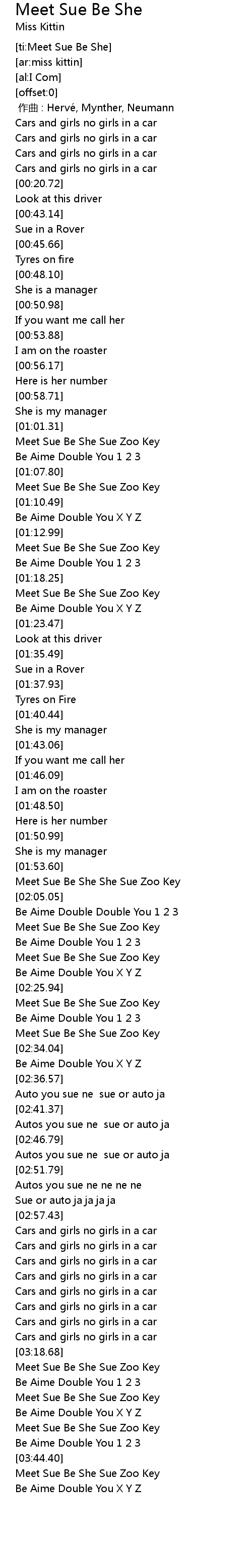 | [01:58.09] | Meet Sue Be She She Sue Zoo Key |