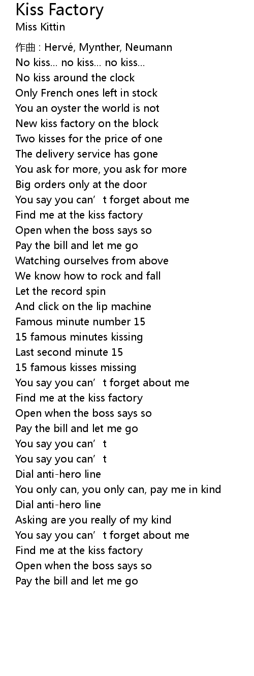 | Find me at the kiss factory | |