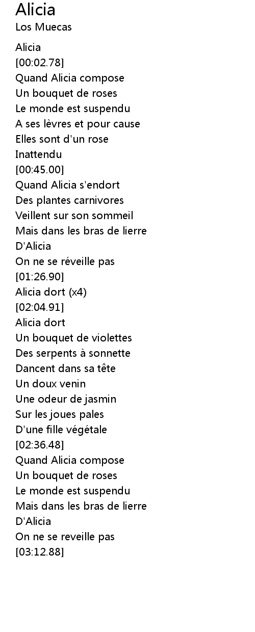 | [00:59.12] | Quand Alicia s'endort |