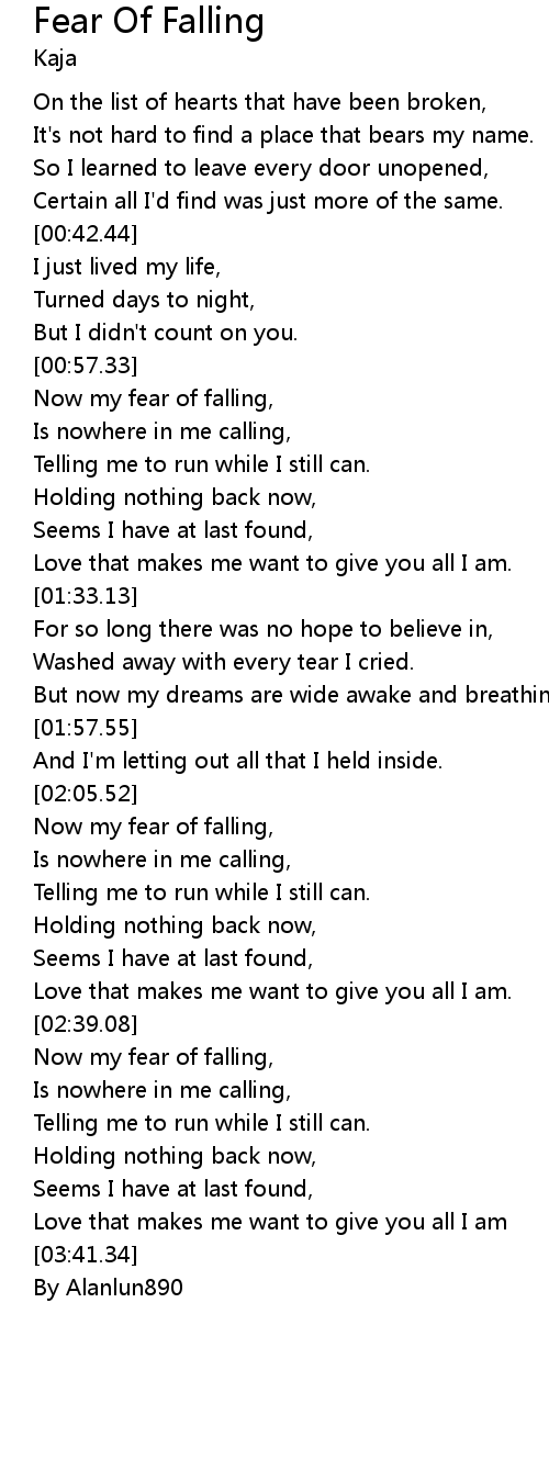 Now my fear of falling, |