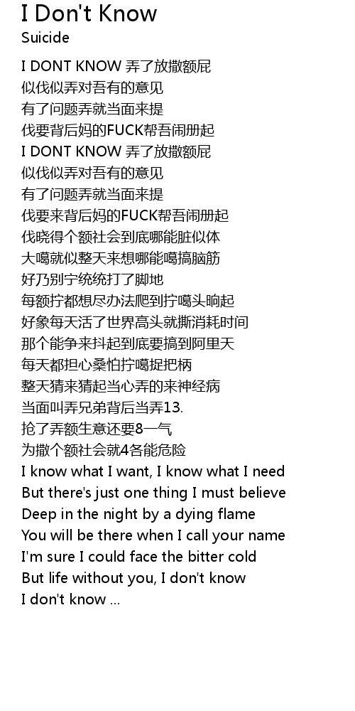 | [00:03.14] | I DONT KNOW 弄了放撒额屁 |