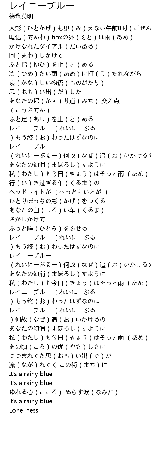 | [03:08.68] | レイニーブルー (れいにーぶるー )もう终(お)わったはずなのに |