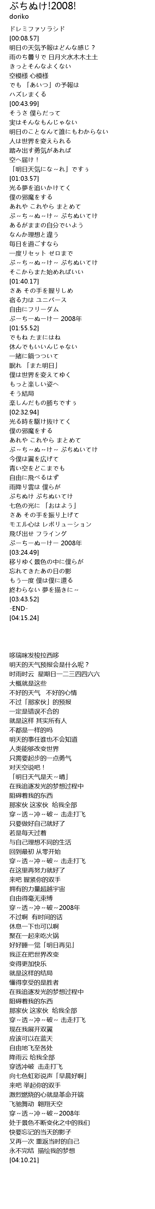 | [01:47.25] | ぶーちーぬーけー 2008年 |