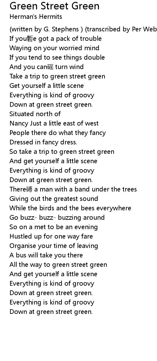 | Song | Green Street Green |