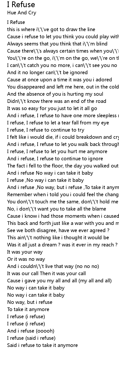 And i refuse ,No way, but i refuse ,To take it anymore |