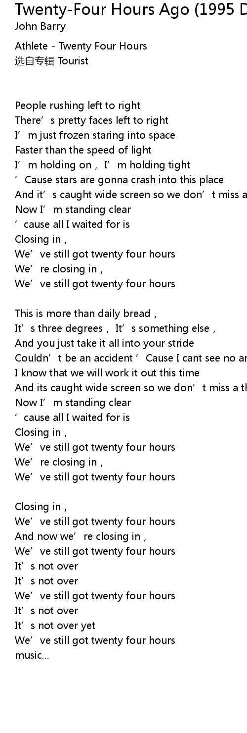 | Song | Twenty-Four Hours Ago (1995 Digital Remaster) |