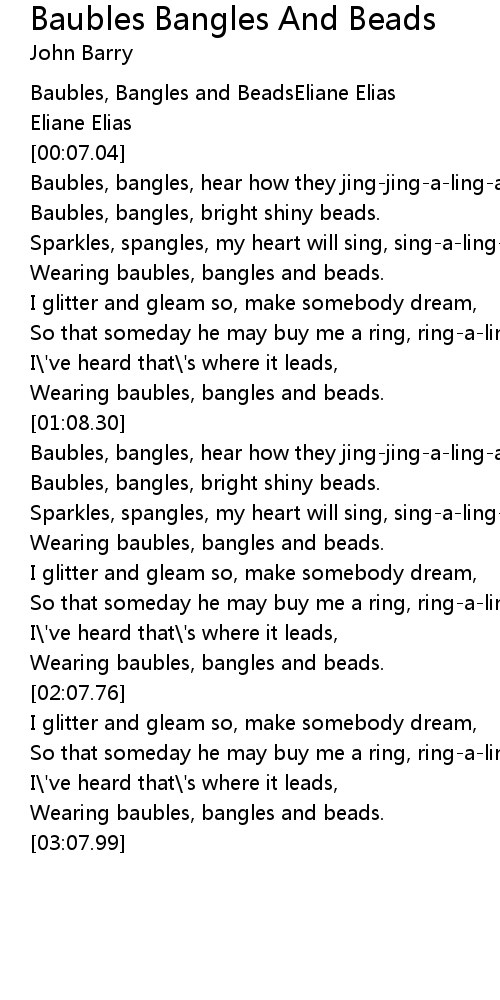 Baubles, bangles, hear how they jing-jing-a-ling-a |