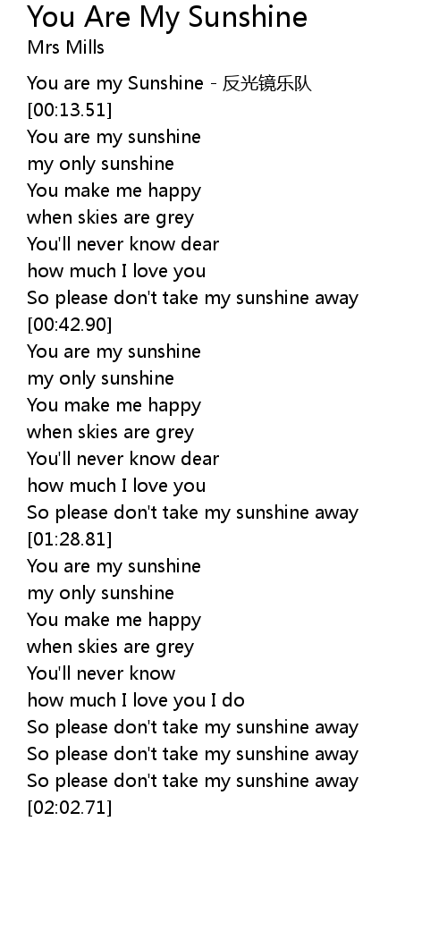 | [00:11.65] | You are my Sunshine - 反光镜乐队 |