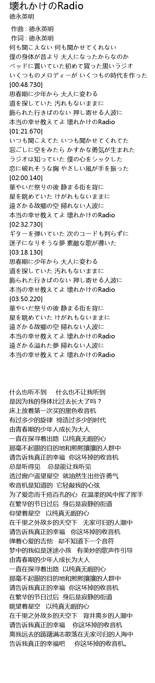 | [03:43.500] | 本当の幸せ教えてよ 壊れかけのRadio |