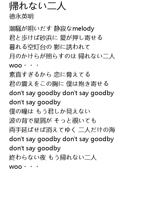 | 終わらない夜 もう帰れない二人 | |