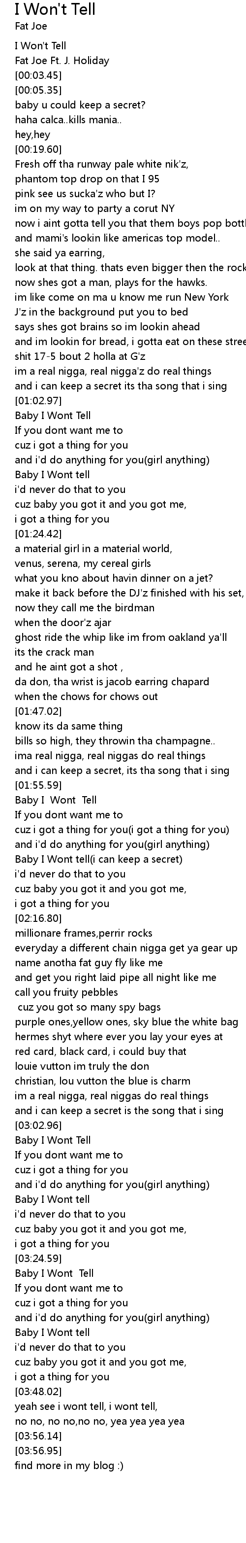[02:05.89] Baby I Wont tell(i can keep a secret)