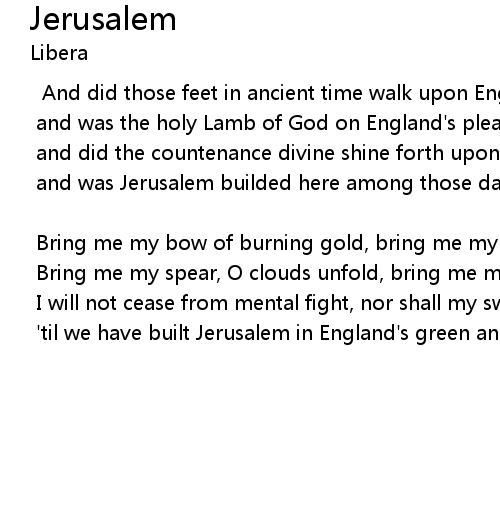 | 'til we have built Jerusalem in England's green and pleasant land |