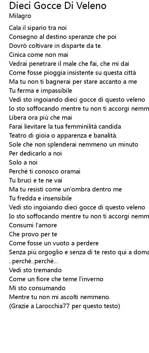 | Album | Dieci Gocce Di Veleno (Sanremo Version) |