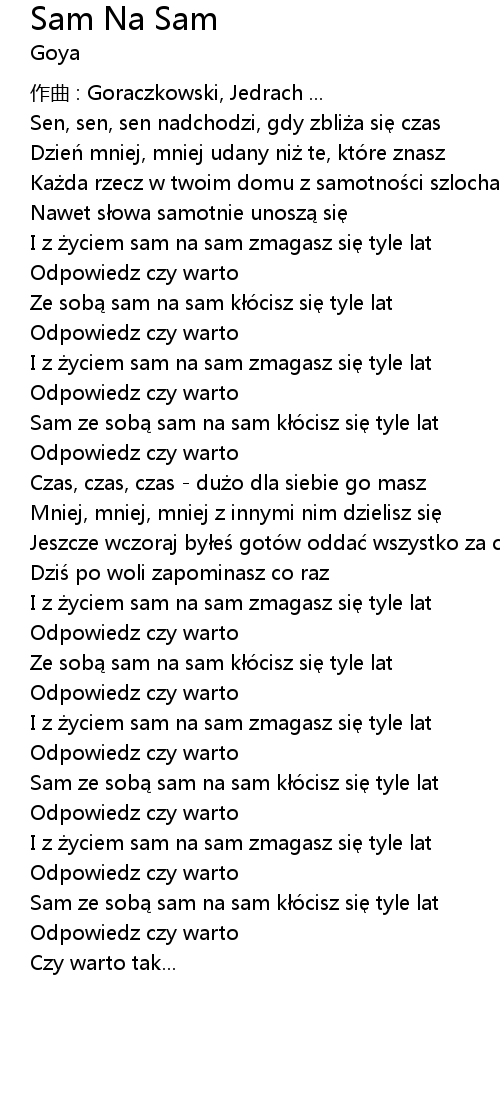 | Ze sob sam na sam kó cisz si tyle lat | |