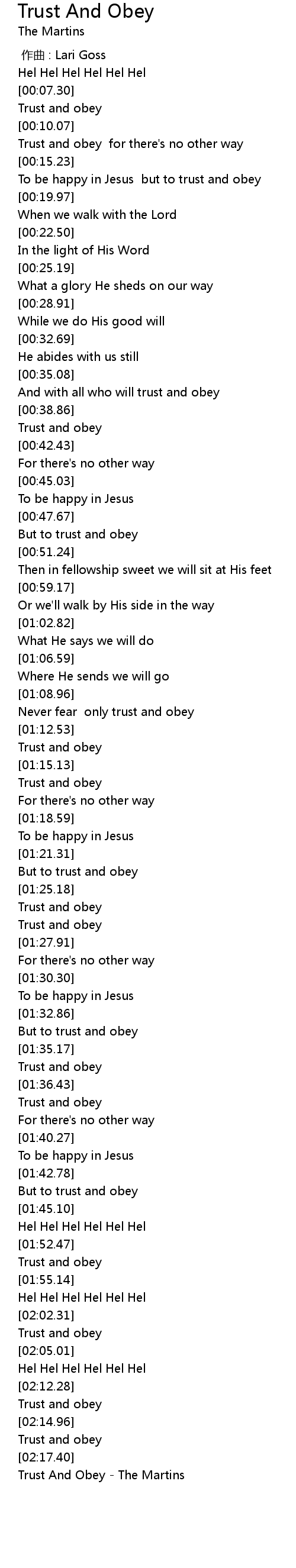 | [00:15.82] | To be happy in Jesus but to trust and obey |