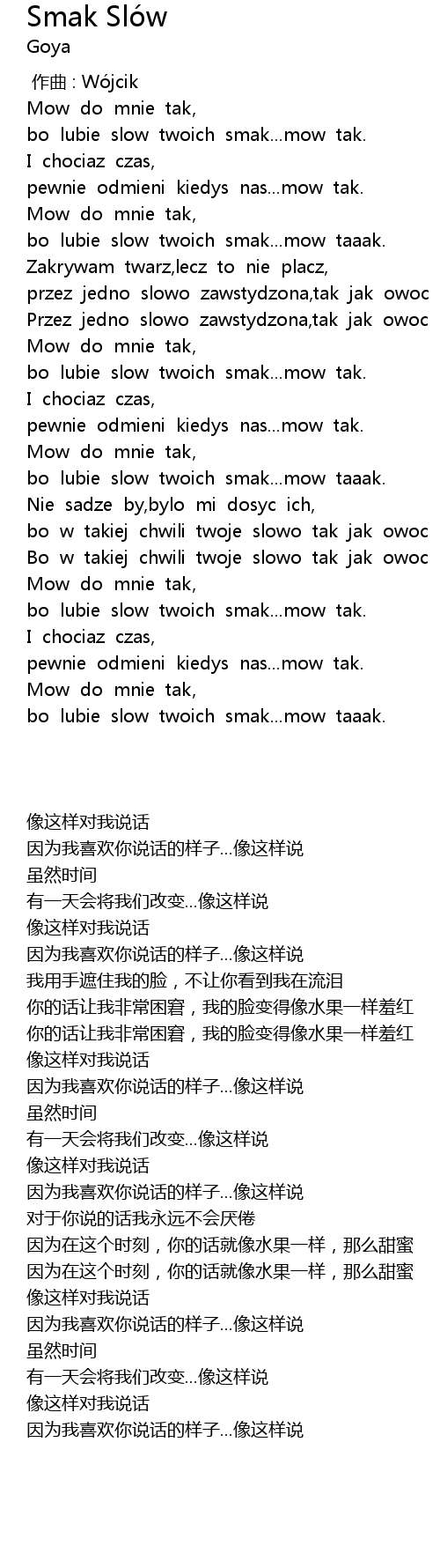 | [00:12.77] | bo lubie slow twoich smak...mow tak. |
