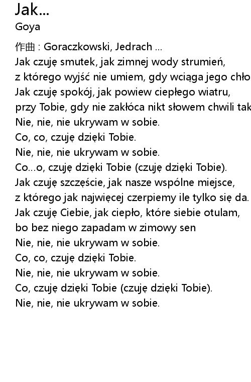 | Jak czuj Ciebie, jak ciep o, kto re siebie otulam, | |
