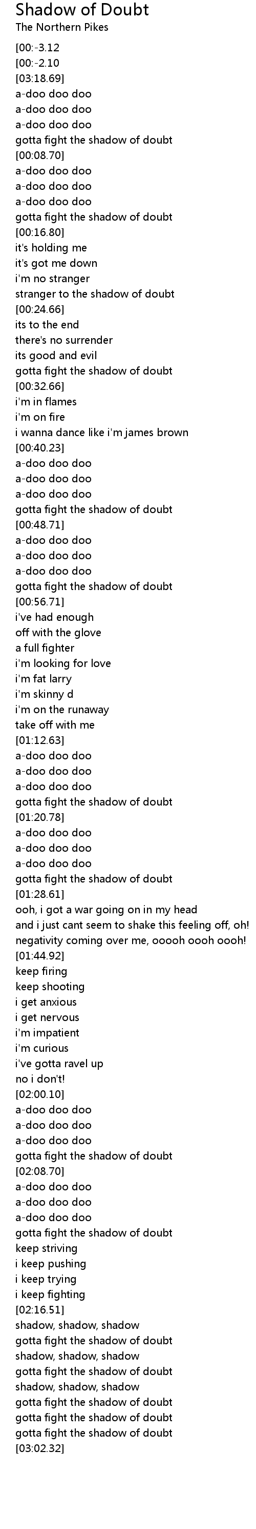 gotta fight the shadow of doubt |
