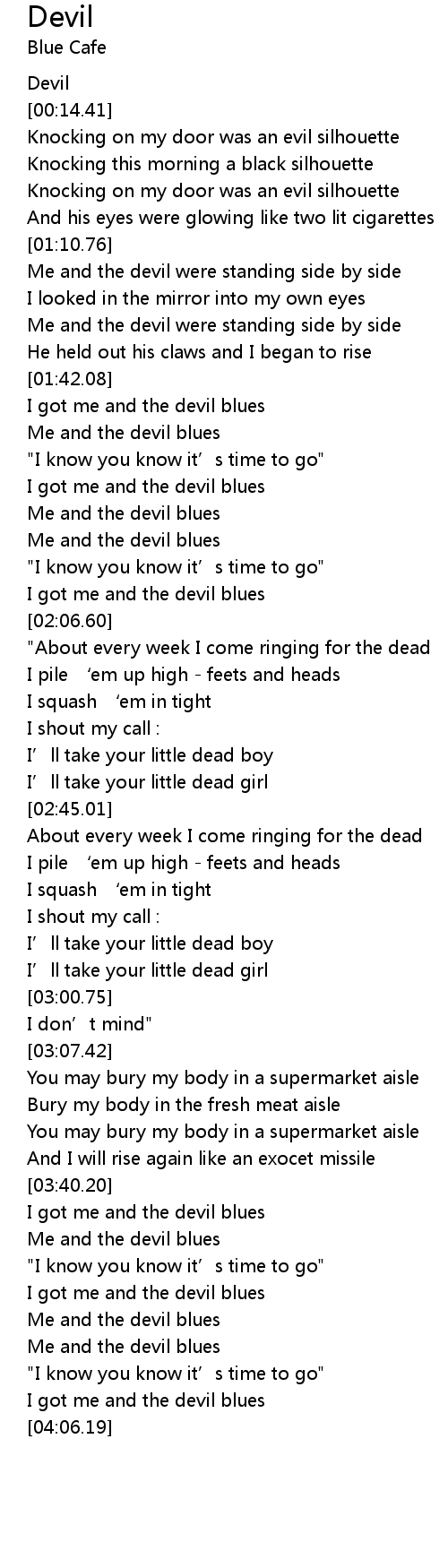 | [03:22.92] | Bury my body in the fresh meat aisle |