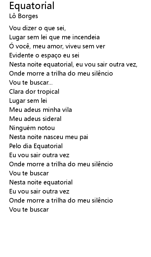 | Song | Equatorial |