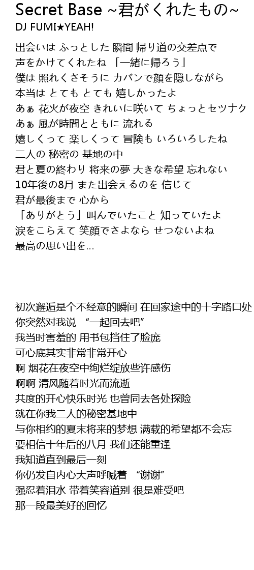 | Song | Secret Base ~君がくれたもの~ |