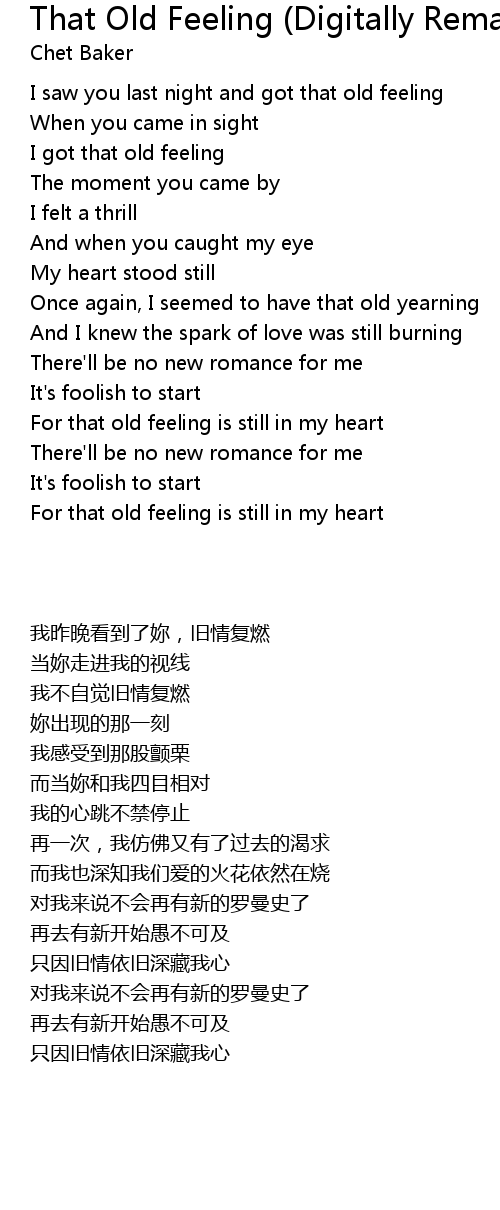 That Old Feeling (Digitally Remastered 04) Lyrics