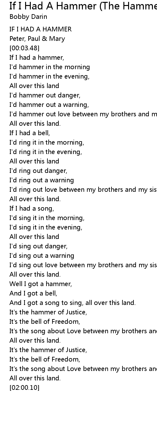 If I Had A Hammer (The Hammer Song) Lyrics