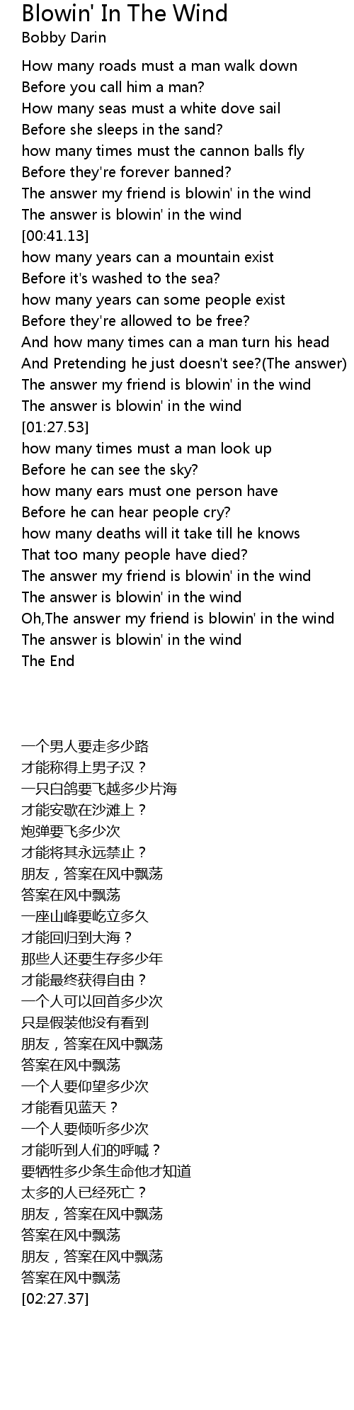 Oh,The answer my friend is blowin' in the wind |