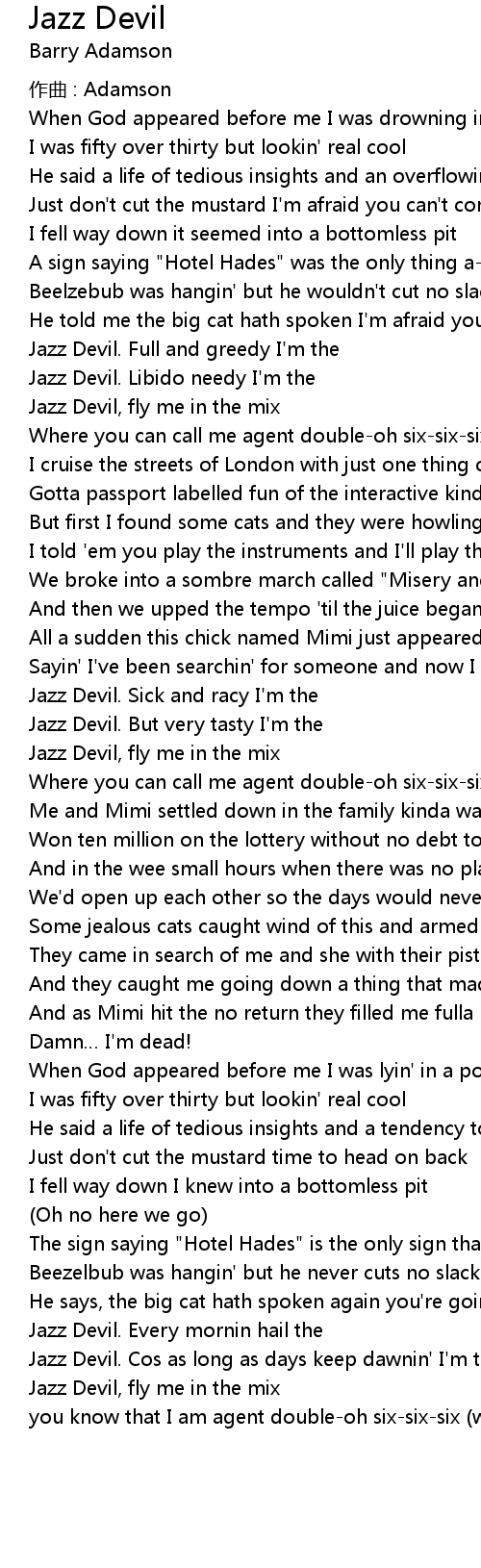 | Jazz Devil. Cos as long as days keep dawnin' I' m the | |