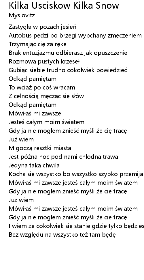 | Song | Kilka Usciskow Kilka Snow |