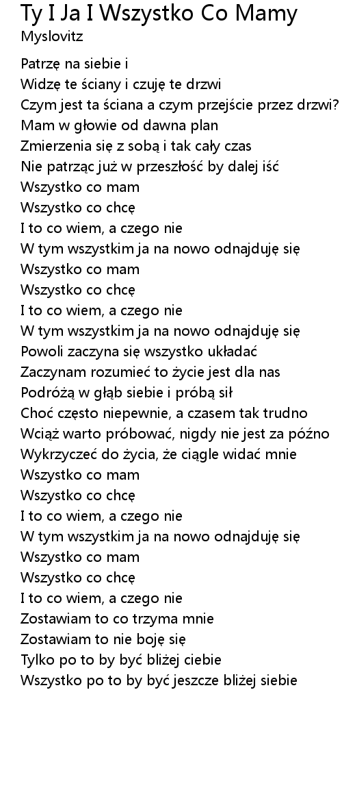 | Song | Ty I Ja I Wszystko Co Mamy |