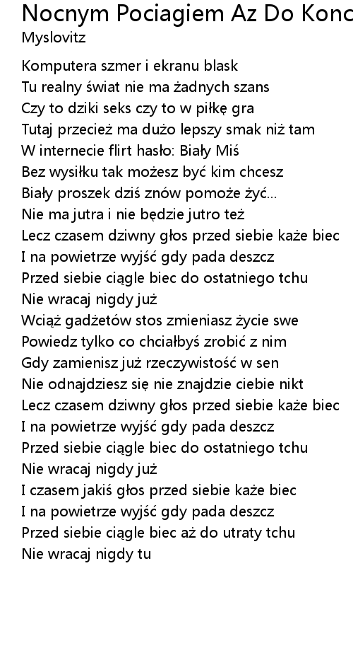 | Song | Nocnym Pociagiem Az Do Konca Swiata |