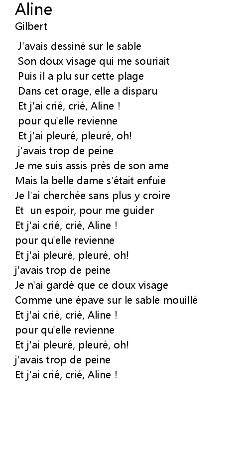 | [02:20.0] | Et j'ai crié, crié, Aline! |