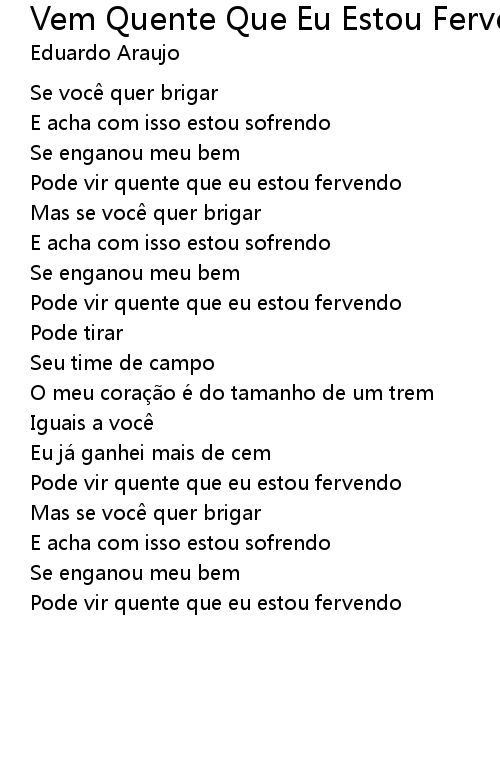 | Song | Vem Quente Que Eu Estou Fervendo |