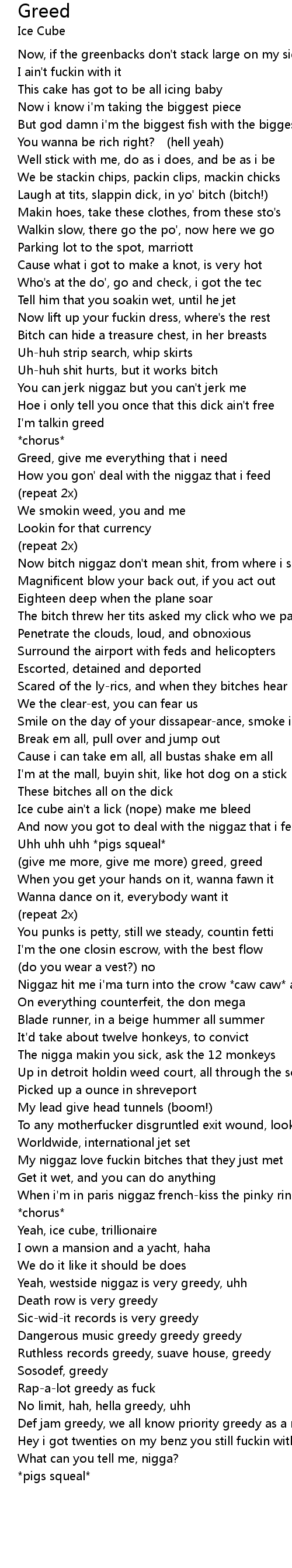 | And now you got to deal with the niggaz that i feed, greed | |