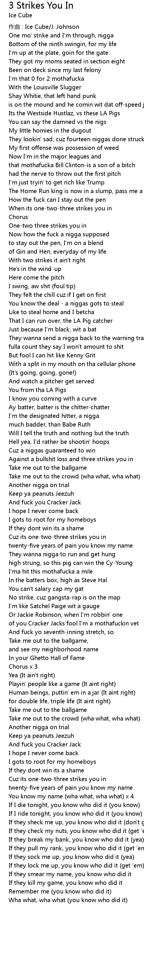 | Song | 3 Strikes You In |