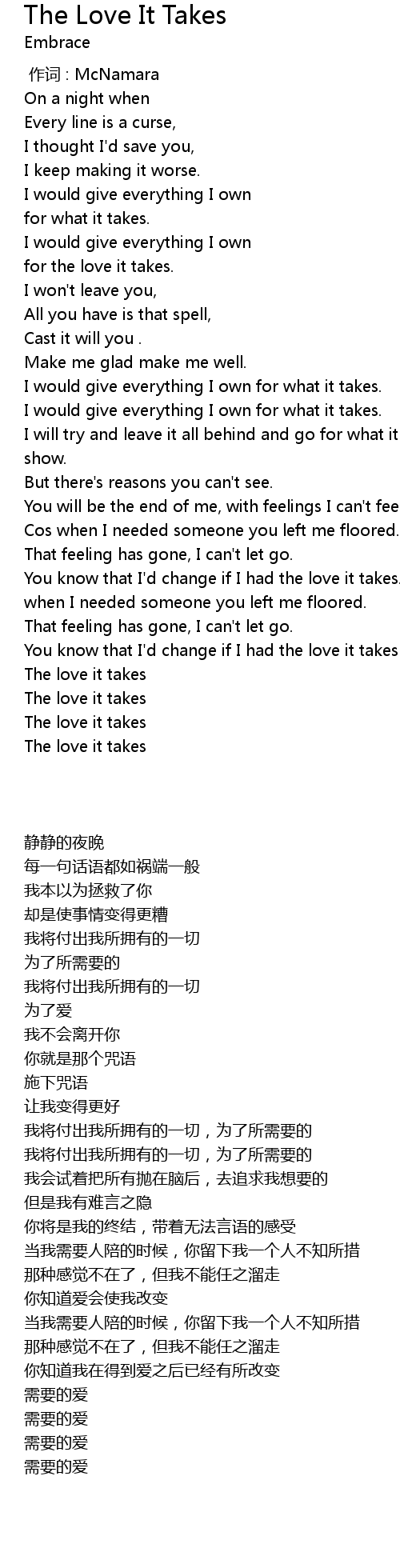 | [04:05.880] | You know that I' d change if I had the love it takes |