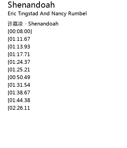 | [00:02.00] | 许嘉凌 - Shenandoah |