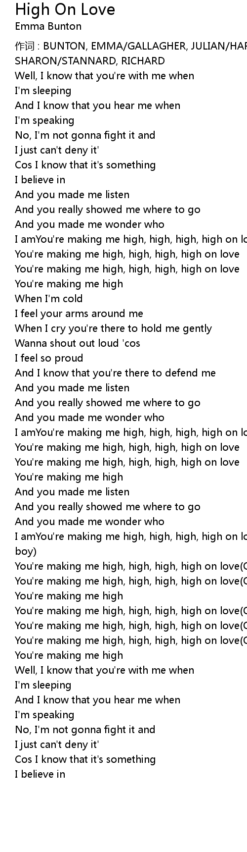 | I amYou' re making me high, high, high, high on love Ooh, you' re making my high, boy | |