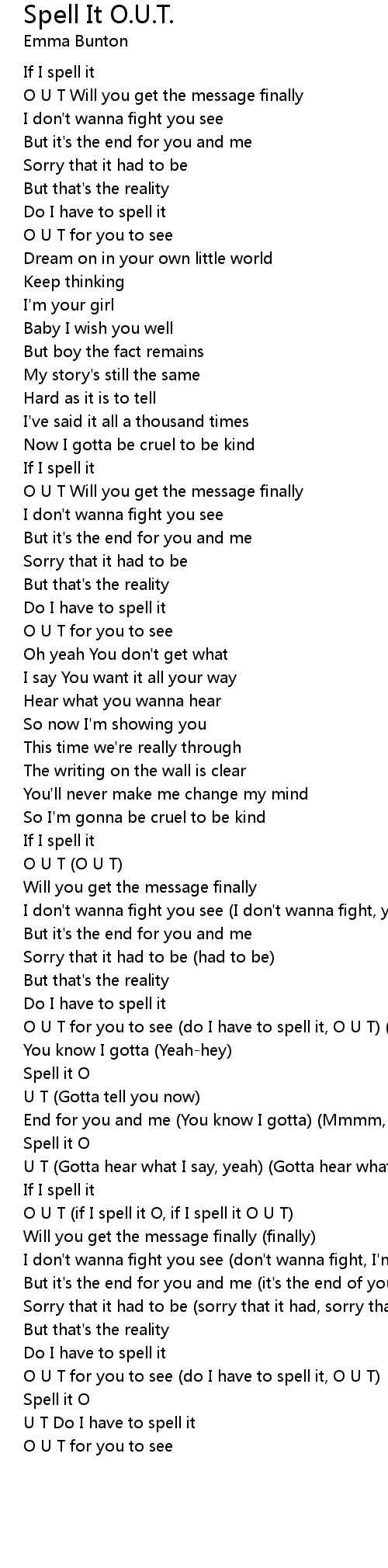 O U T (if I spell it O, if I spell it O U T) |