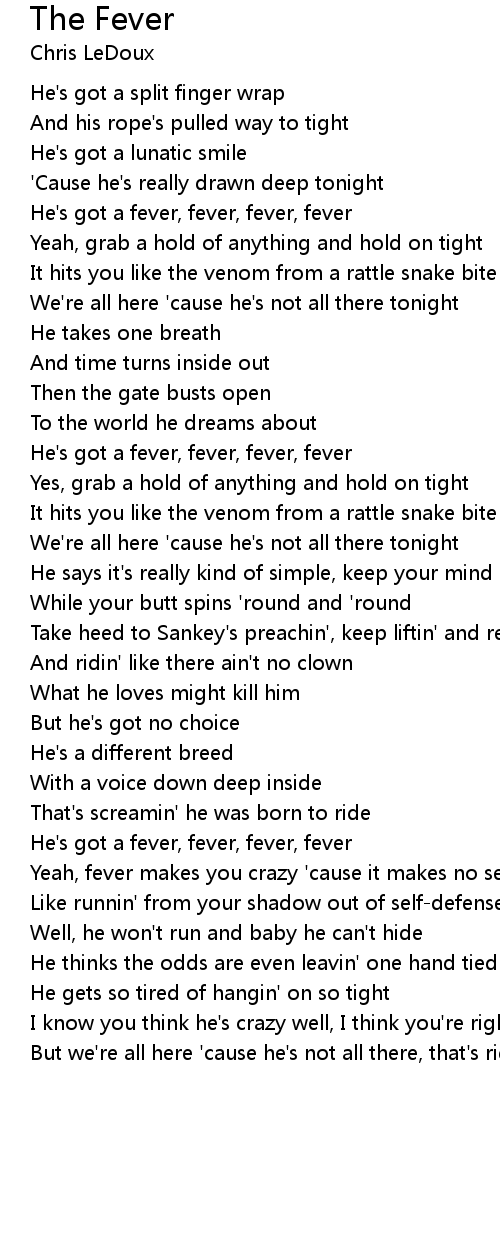 Yeah, fever makes you crazy 'cause it makes no sense |