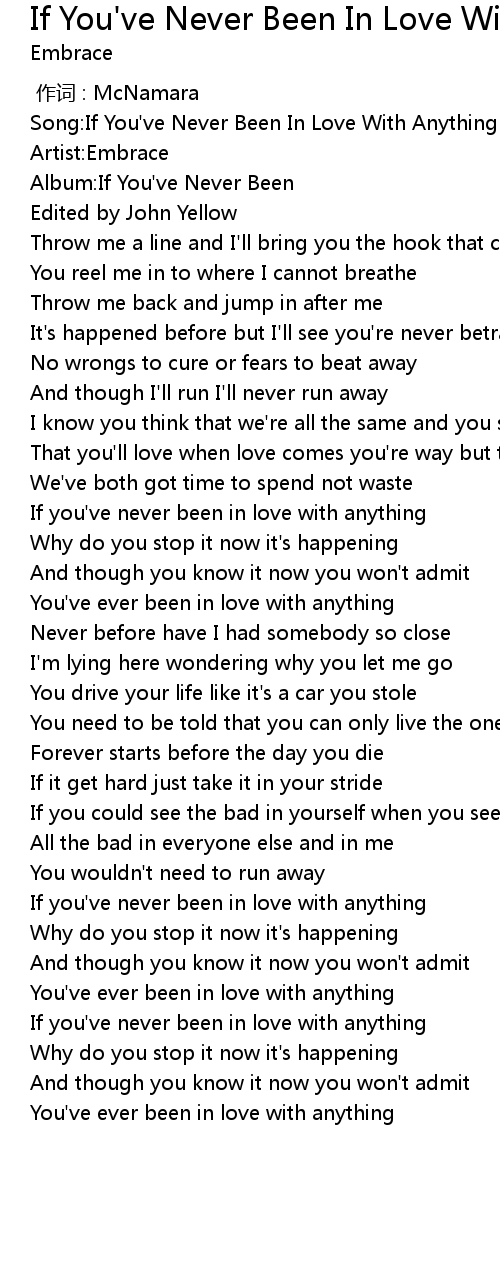 | [02:31.67] | If you' ve never been in love with anything |